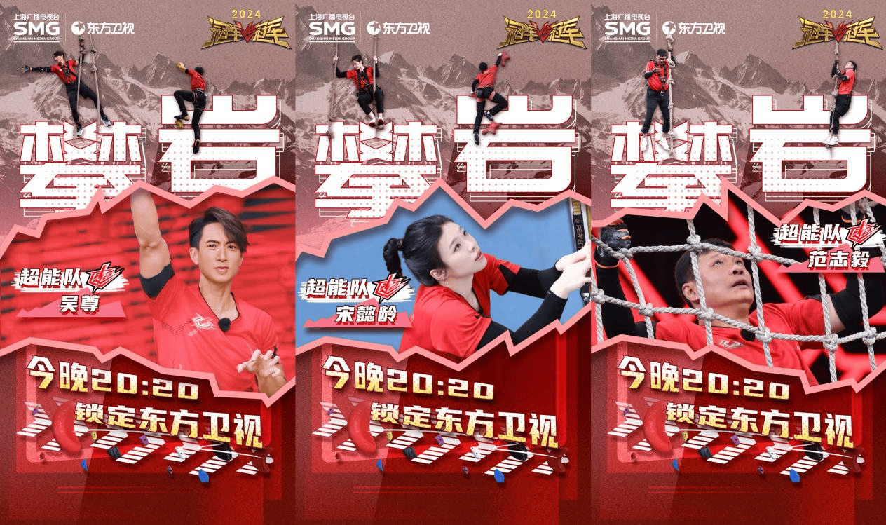 攀爬者在攀爬前要先观察并熟悉岩点的形状和位置,从而判断出最合适的路线。“寻找岩点”比赛中,两队要从攀爬网上挂着的100个岩点中找出特定的8块,并以最快的速度拿下。梦之队采取大浪淘沙战术,尽量多地取下岩点,从中找出相匹配的;超能队则精准出击,争取每一次攀爬都能带下正确的岩点。比赛过程中两队各有状况,十分焦灼。“迎难而上”考验的则是攀爬速度,韩天宇和范志毅率先对垒。范志毅手腕曾受过伤,很影响发力,不服输的他拿出运动员的拼劲令人动容。孟鹤堂则选择与吴尊对垒,吴尊上肢力量颇具优势,孟鹤堂在钟齐鑫的指导下,靠下肢力量拼速度,双方都拼到力竭。