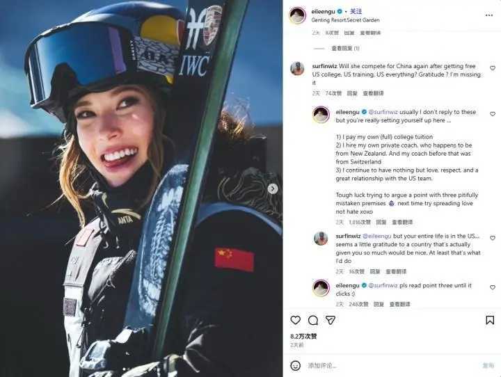 爱游戏,爱游戏体育,爱游戏平台,爱游戏娱乐,爱游戏官网,爱游戏官方网站,ayx爱游戏平台,爱游戏app,爱游戏体育app,爱游戏app下载,爱游戏体育官网,爱游戏体育app下载,爱游戏体育网页版,爱游戏官方入口,爱游戏手机APP赛场之外的社媒平台,谷爱凌分享的夺冠照片和生活随拍,却意外引来了不和谐的声音。一位外国网友带着满满的酸味挑衅发问:“你在美国免费读大学、训练、享受美国的一切之后,还会再次代表中国参赛吗?感恩?我想不到。” 这番充满偏见的言论,瞬间将谷爱凌推上了舆论风口。 面对无端指责,22岁的谷爱凌丝毫没有退让,直接正面回怼,用三点事实有力击碎对方的不实揣测。她明确表示,自己的大学学费全程自费,从未占用美国的福利资源;私人教练来自新西兰和瑞士,并非所谓的美国培养;同时她强调,自己始终对美国队充满爱与尊重,双方保持着良好的关系。